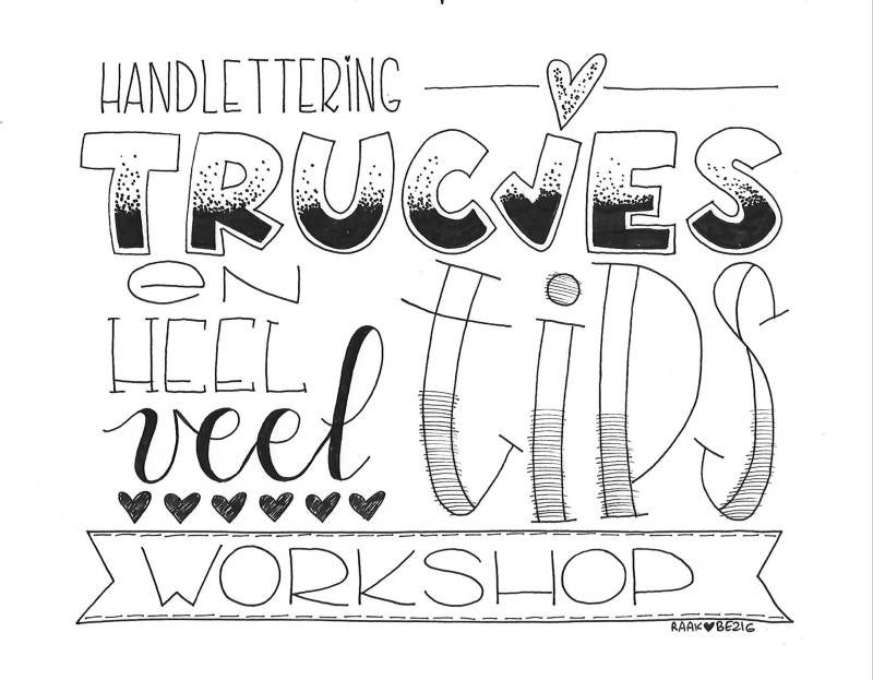 In deze workshop leer ik je de letters tekenen en mag jij mij alles vragen over handlettering. Veel persoonlijke aandacht, veel tips en trucjes.